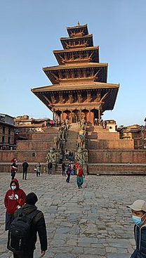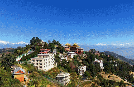 Banepa is a busy municipality and historical town in Kathmandu valley situated at about 4,800 ft (1,500 m) above sea level in central Nepal which is at about 25 kilometres (16 mi) east from Kathmandu. It has a population of over 60,000. One of the main attractions of Banepa is the temple of Chandeshwori, located approximately 1 km (0.62 mi) northeast of the town along the Rudramati River. The Dhaneshwor Temple is 1 km south of the town. It is also near the Sanga statue of Shiva (the tallest in the world)and its proximity to the Dhulikel hotels with their wonderful views of mountain ranges. Banepa is also known for its eight different temples of Lord Ganesh, Narayanthan (the temple of Lord Narayan), Bhimshenthan (the temple of Lord Bhimshen) and eight different ponds. It is also a good stopping place if you want to visit ancient Panauti or the villages in the valley of Rabi Opi.
