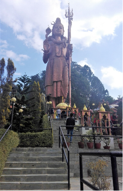 Kailashnath Mahadev Statue is the world's tallest Shiva statue. It is second tallest Hindu deity after Garuda Wisnu Kencana Statue in Bali, Indonesia. It is situated in Sanga, on the border of the Bhaktapur and Kavrepalanchwok districts in Nepal, about 20 km from Kathmandu. The statue is 143 feet (43.5 m) in height was made using copper, zinc, concrete, and steel. Its foundations are 100 feet deep to sustain earthquake or landslide. Sanga is only 5 km from Banepa.