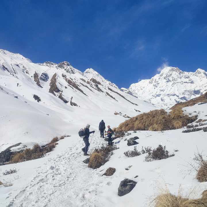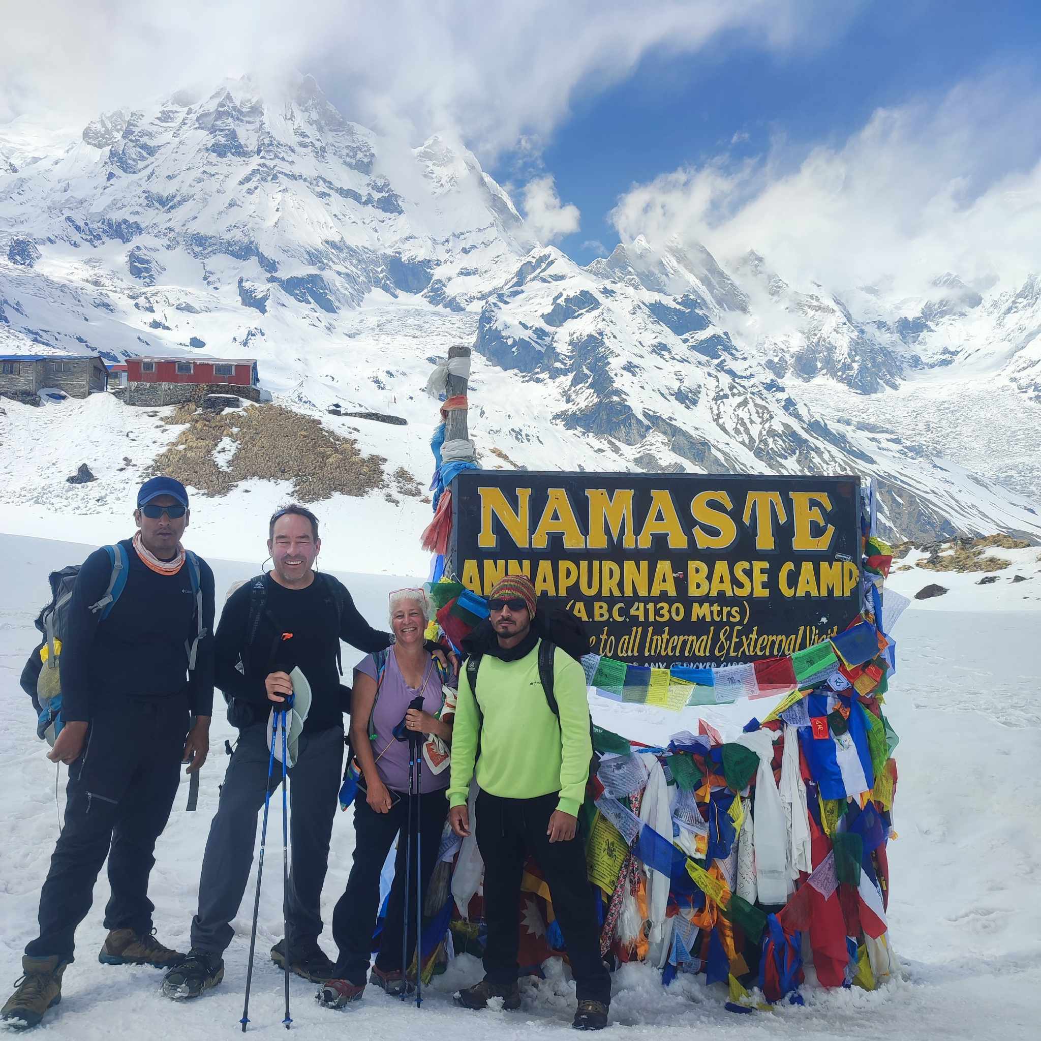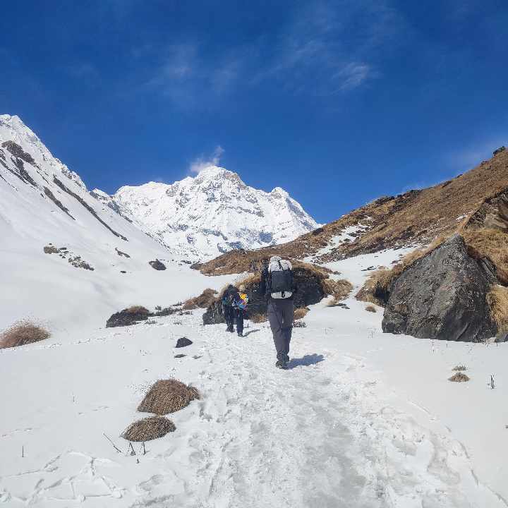 19th our final destination is to reach Annapurna Basecamp walking with 5 hours b we had tea break in fishtail base camp Very nice to walk along the Modi river and mountain view wow almost going to base camp we saw people are enjoying with snow and we saw small avalanche as we reached base camp we took group picture and enjoy viewed ours guest offering beers and enjoy. 20th we had breakfast and started to back our destination downhill called bamboo, 21th our destination is in Jhinu dada after walking 5 hours. We went to hot springs to shower nice. 22th our destination is to reach Pokhara with private jeep.