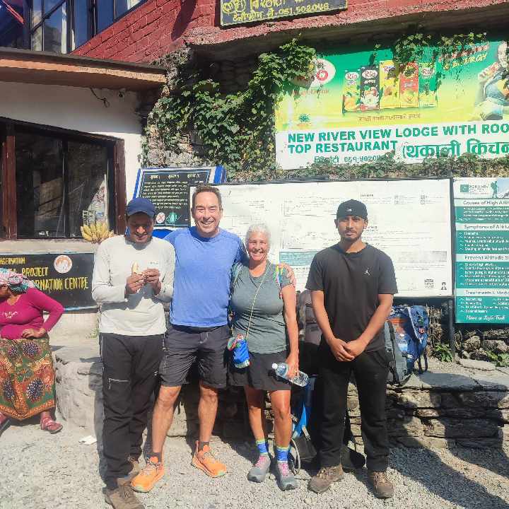 2024 first clients which are from USA and they are recommended from their son and his son have done trek with me 2017 Everest base camp. March 12. I went to receive them in airport with flowers to welcome them to Nepal. I had booked hotel tor them already.