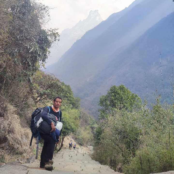17th march early morning took breakfast and walked to on the way to Annapurna base camp trek we had lunch in beautiful village called Chumrong, with view of mountain Fishtail , Annapurna south and Himchuli over night in Sinuwa village took dinner order and breakfast after dinner .